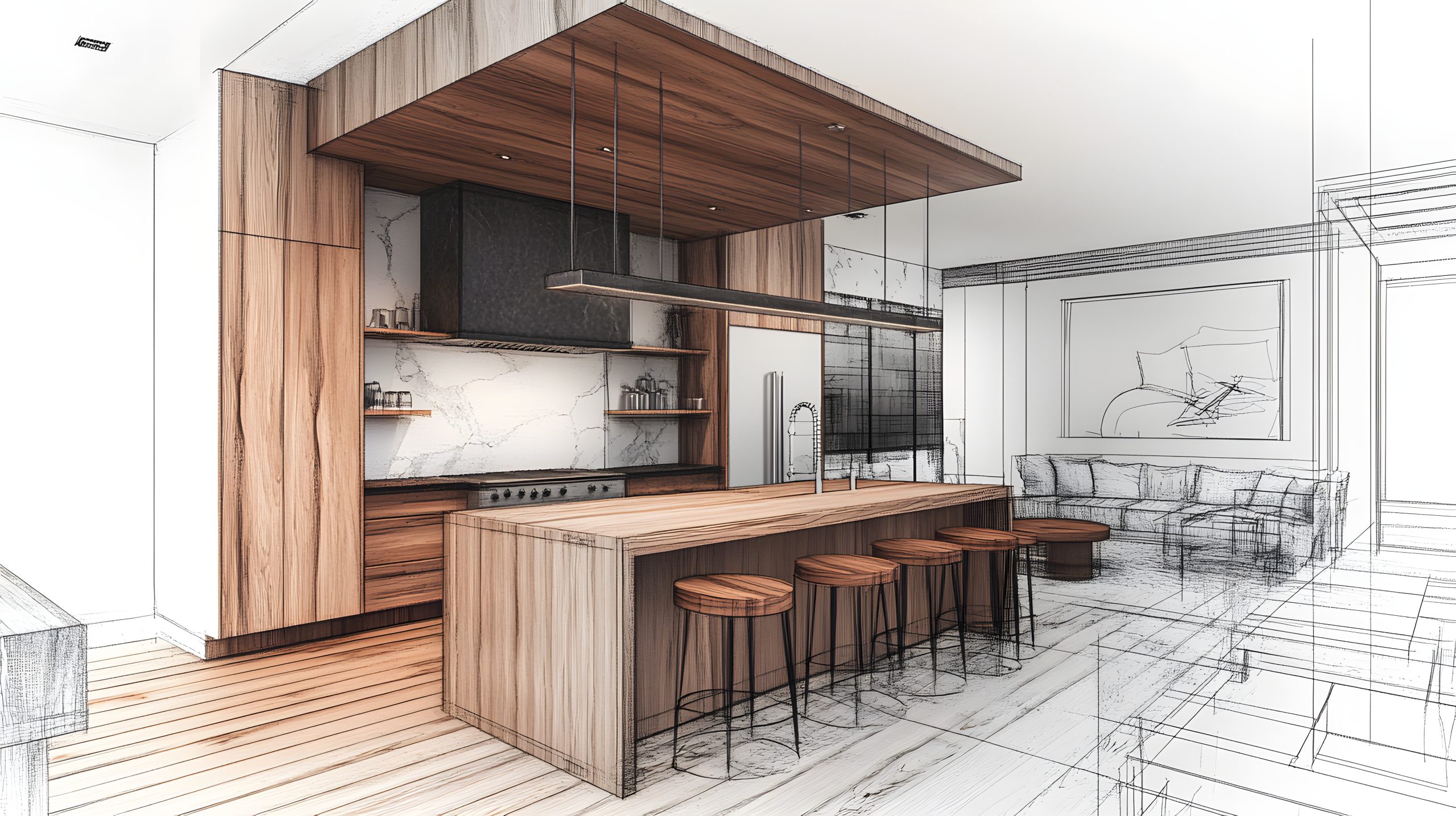 La pièce de vie incarne ainsi une nouvelle vision de l’habitat : ouverte, connectée, baignée de lumière naturelle et pensée dans une logique d’usage intelligent. Elle concentre souvent salon, salle à manger et cuisine dans un espace unique et généreux, allant de 35 à 50 m² selon la taille de la maison.